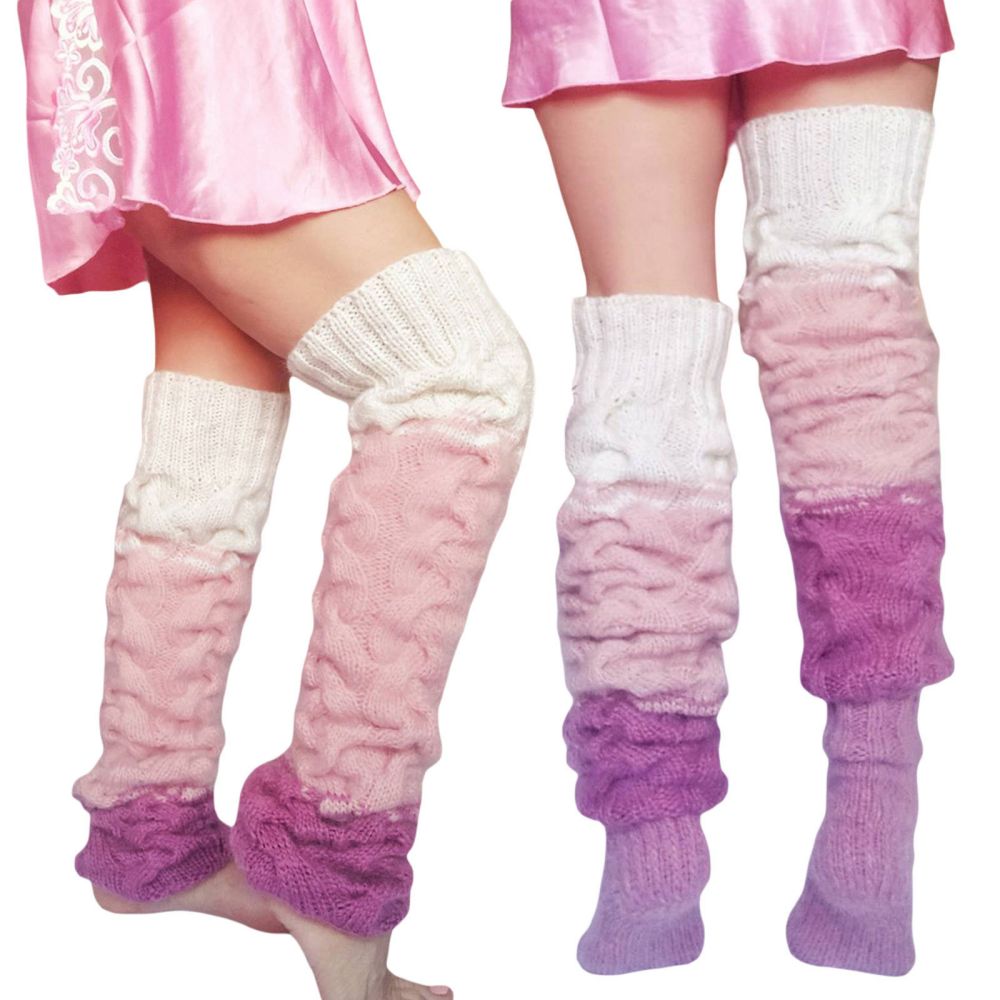 Calentadores De Piernas De Invierno Para Mujer Calcetines De Punto Gradiente Multicolor Sobre La Rodilla Calcetines De Pila