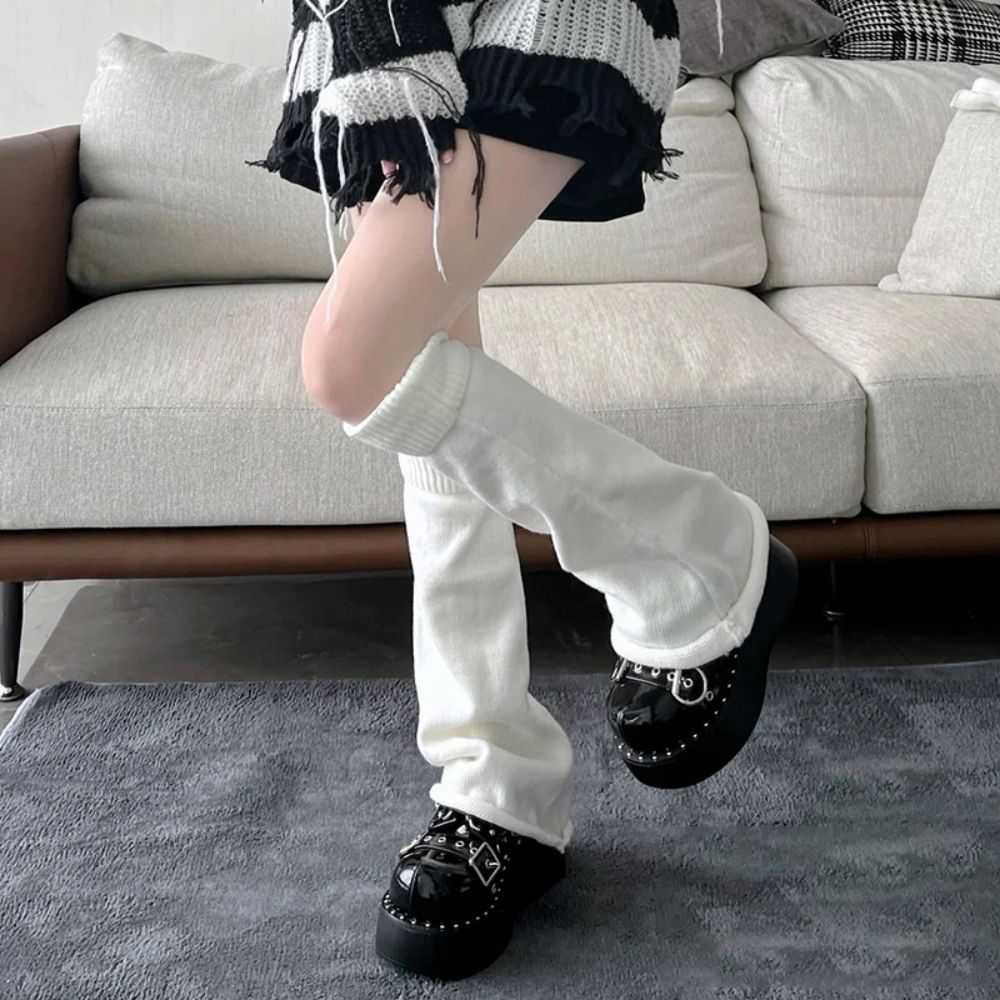 Calentadores De Piernas De Invierno Para Mujer, Medias De Color Sólido, Calcetines Tejidos Por Encima De La Rodilla