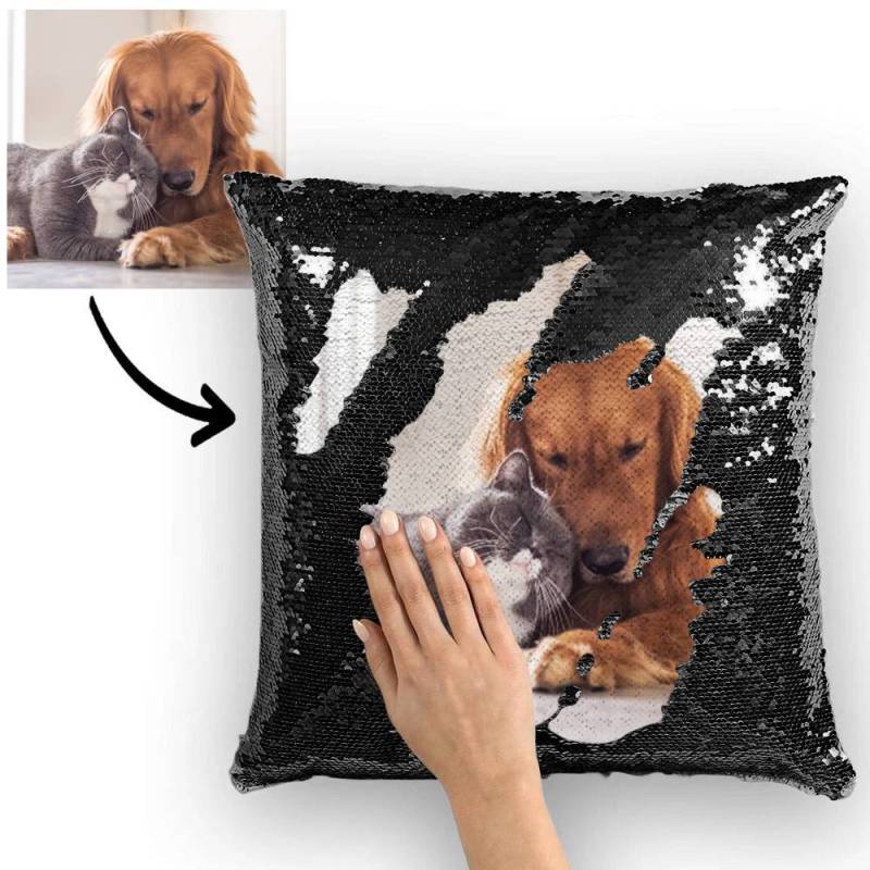 - Almohada fotográfica personalizada con lentejuelas mágicas