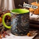 - Taza de cerámica de alta calidad con borde, interior y asa en dos tonos.