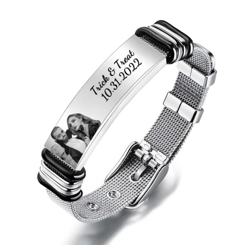 Esta pulsera única es el mejor regalo perfecto para él. Fabricada en acero inoxidable, representa que su amor por él podría durar para siempre. Personalice el código de Spotify Pulsera, con foto y palabras grabadas, elige tu canción, foto y palabras favoritas, todo se puede imprimir en la pulsera y puedes generar un código Spotify único. Puedes escanear el código en la aplicación Spotify, después de escanear el código, tu canción comenzará a reproducirse inmediatamente. Es un regalo perfecto para diversas ocasiones como el día del padre, Navidad o Acción de Gracias. ¡Es un recordatorio de que padre e hijas nunca dicen adiós!