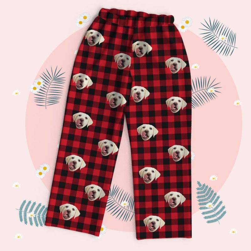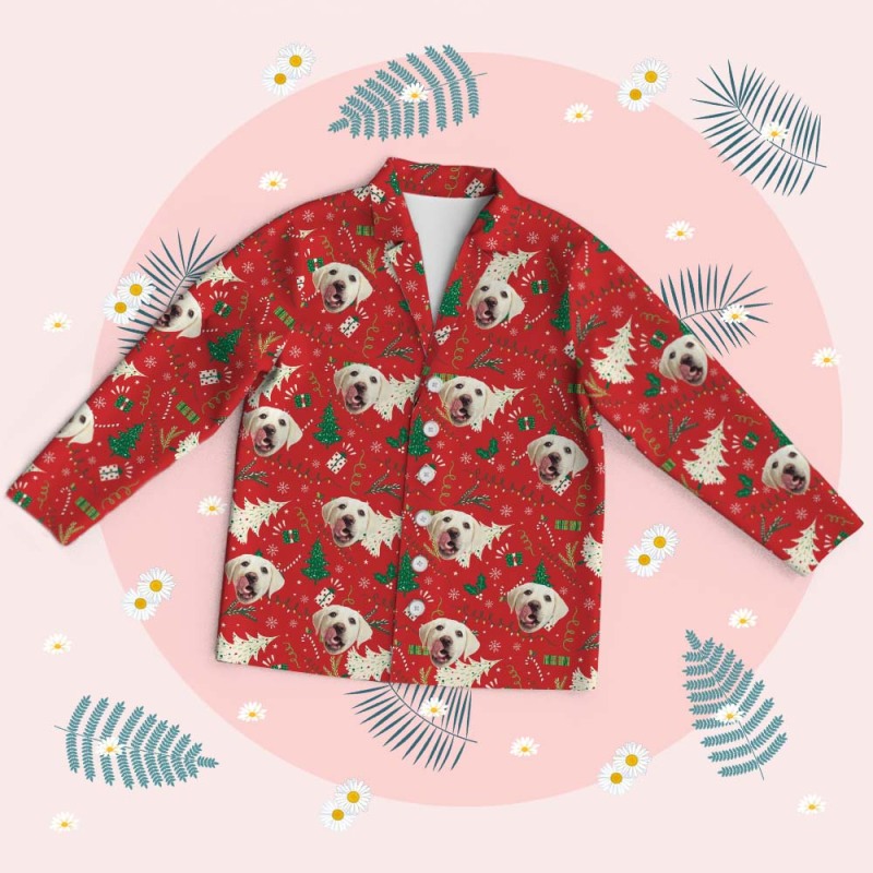 Pijamas De Manga Larga Con Cara De Navidad Personalizados, Con Cara De Mascota, Foto Personalizada, Patrón De Arreglo Rojo, Regalo