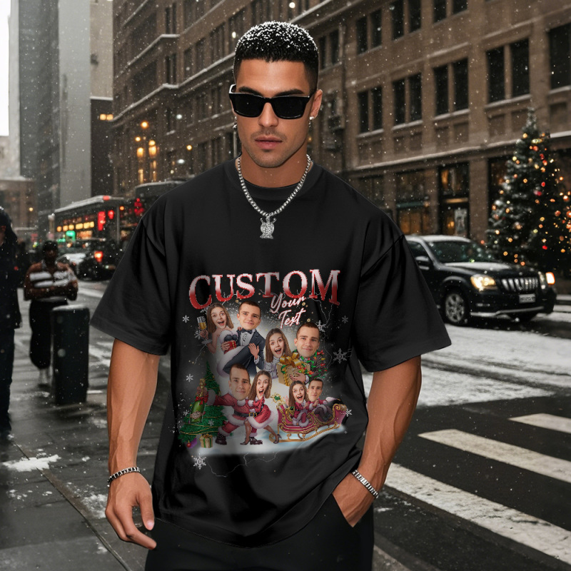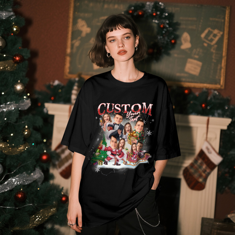 Camiseta Personalizada Con Retrato De Pareja. Camiseta Con Cara Personalizada. Regalo De Navidad A Juego Para Enamorados.