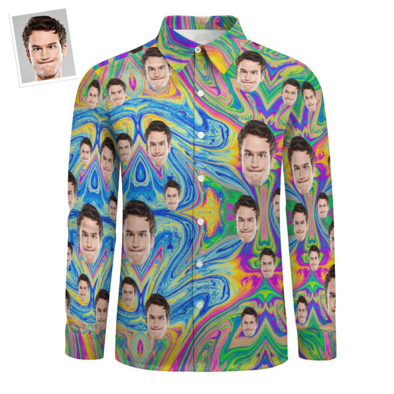 Camisa De Manga Larga Grande Con Estampado De Cara Personalizada Flujo De Pintura Abstracta Colorida - Camisa De Manga Larga Grande Con Estampado De Cara Personalizada Flujo De Pintura Abstracta Colorida - Camisa De Manga Larga Grande Con Estampado De Cara Personalizada Flujo De Pintura Abstracta Colorida