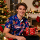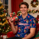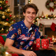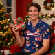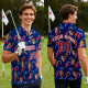 Polo De Golf De Alto Rendimiento Con Cara Y Texto Personalizados De Papá Noel Azul Navideño