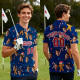 Polo De Golf De Alto Rendimiento Con Copos De Nieve En Rojo Oscuro Y Cara Y Texto Personalizados De Papá Noel Navideño