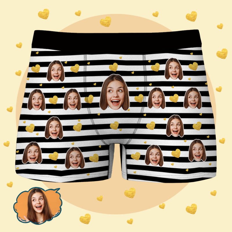 Calzoncillos tipo bóxer con cara personalizada Calzoncillos tipo bóxer con foto personalizada - Rayas blancas y negras