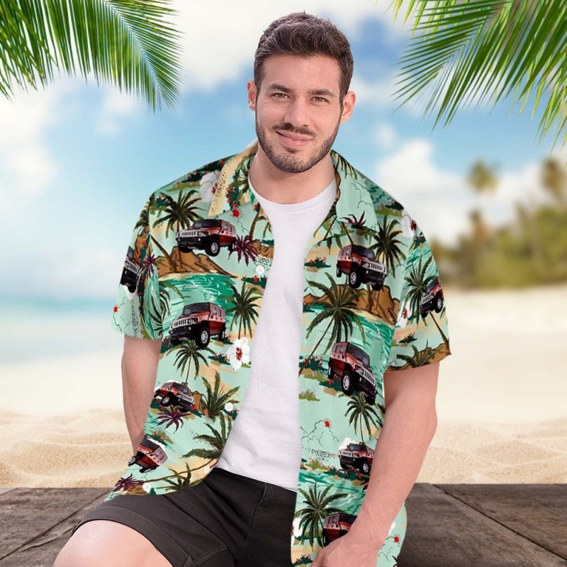 Camisa Hawaiana Con Cara Personalizada, Camisa Hawaiana Con Cara De Amante Del Coche Y Hojas Verdes De Verano