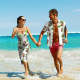 Cara Personalizada Estilo Hawaiano Hojas De Palma Frescas Vestido Largo Y Camisa Traje De Pareja