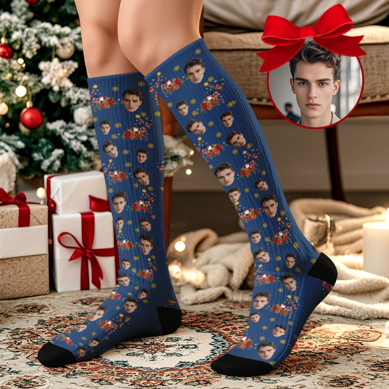Calcetines Hasta La Rodilla Con Cara Personalizada, Calcetines Vintage, Feliz Navidad Para Enamorados, Regalos De Navidad.