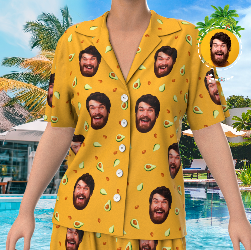 Conjunto De Pijama Personalizado Con Cara, Ropa De Dormir De Manga Corta, Ropa De Dormir Con Botones - Aguacate