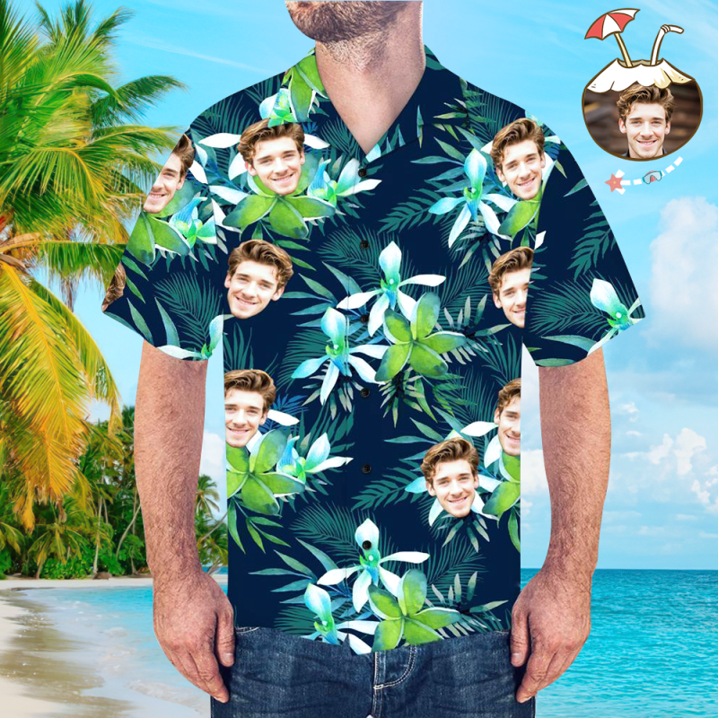 Camisa Hawaiana Personalizada Con Cara Para Hombre Big Flower