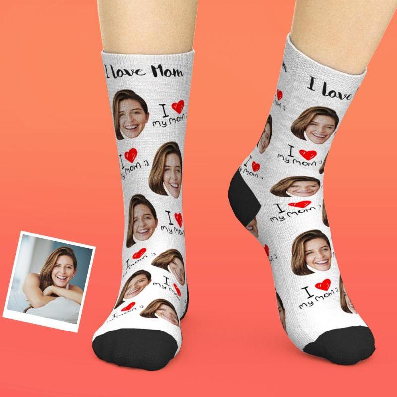 Calcetines faciales personalizados agregan imágenes y nombran el regalo del día de la madre - Amo a mi mamá