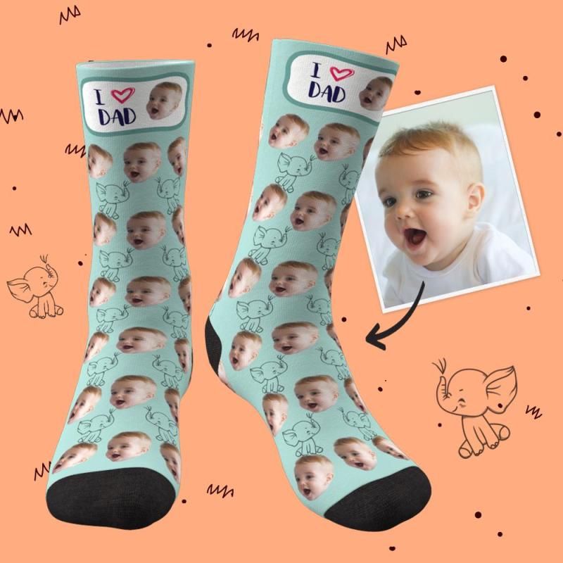 Calcetines Personalizados con Cara Elefante Amo a Papá Mejores Regalos para Papá