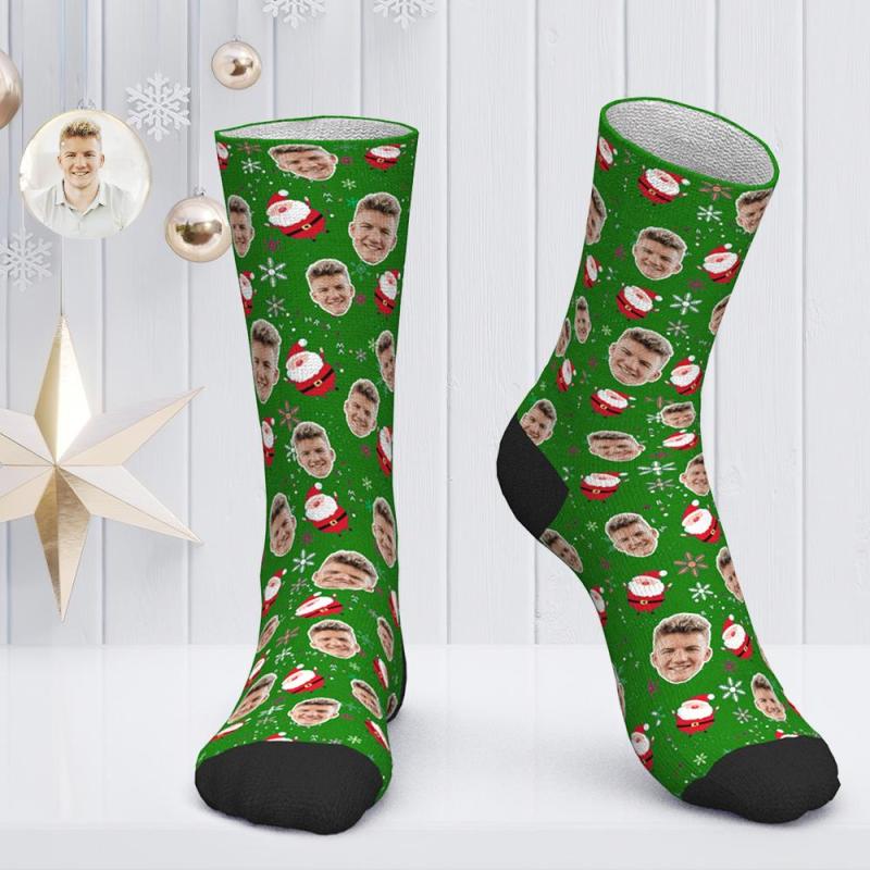 Calcetines faciales personalizados Calcetines personalizados con foto Regalo de Navidad Calcetines de Papá Noel - Papá Noel y nieve