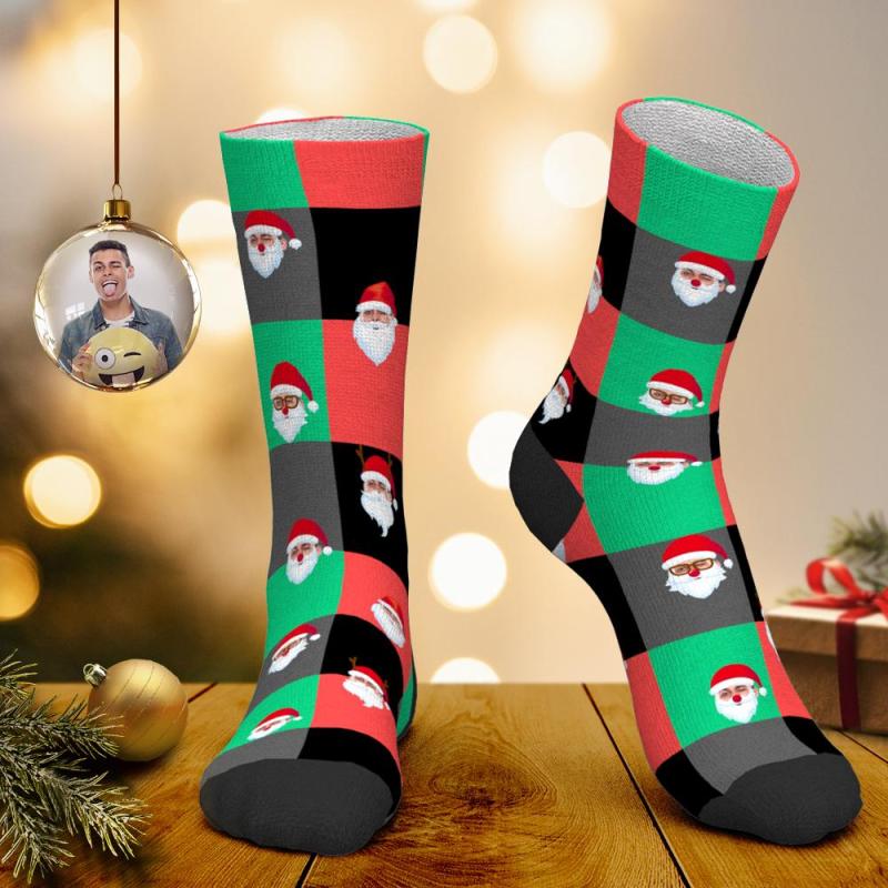 Calcetines de cara personalizados Calcetines personalizados de fotos Rejilla de color Calcetines de Santa Regalo de Navidad