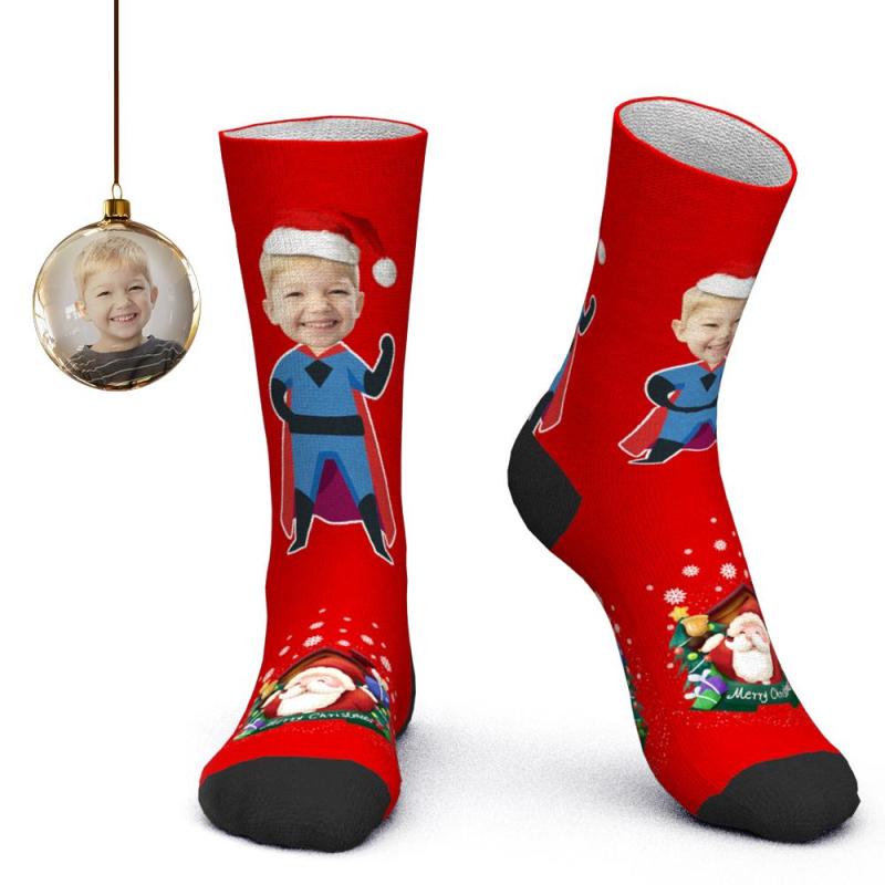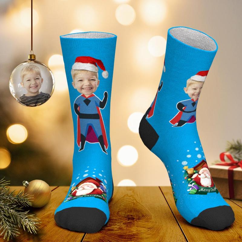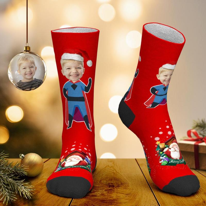 Calcetines faciales personalizados Calcetines personalizados con foto Calcetines de Papá Noel Regalo de Navidad - Superman de Navidad