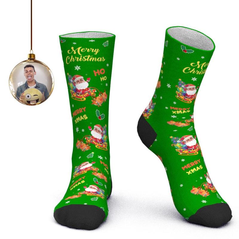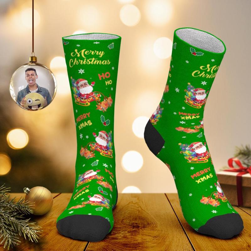 Calcetines faciales personalizados Calcetines personalizados con foto Calcetines de Papá Noel Regalo de Navidad - Feliz Navidad