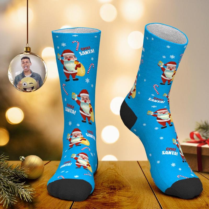 Calcetines faciales personalizados Calcetines personalizados con foto Calcetines de Papá Noel Regalo de Navidad - Omg Santa