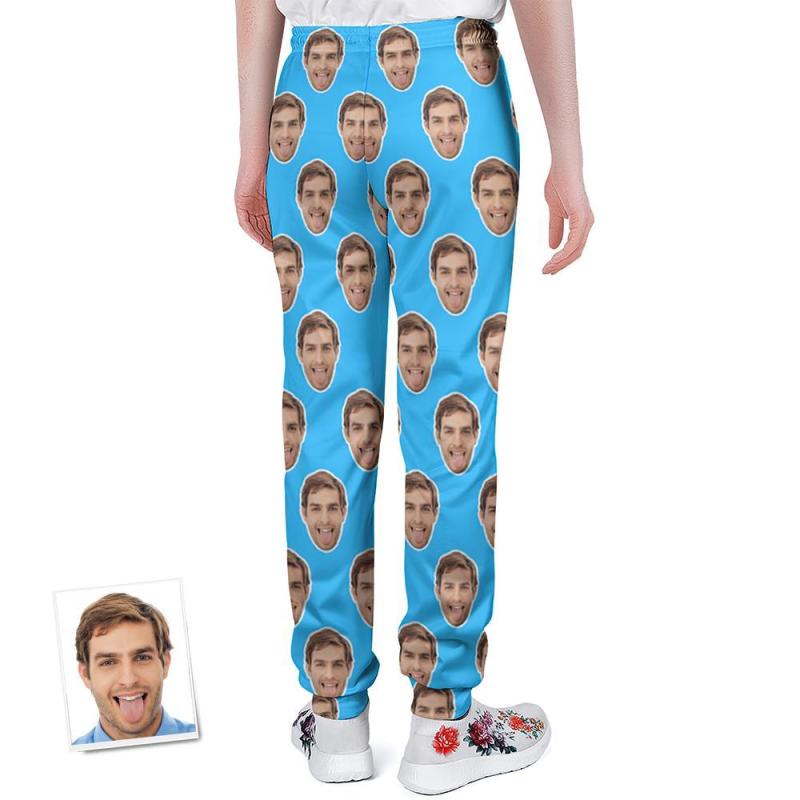 Pantalones De Chándal De Cara Personalizados Joggers Unisex Azules Personalizados - Regalo Para El Amante