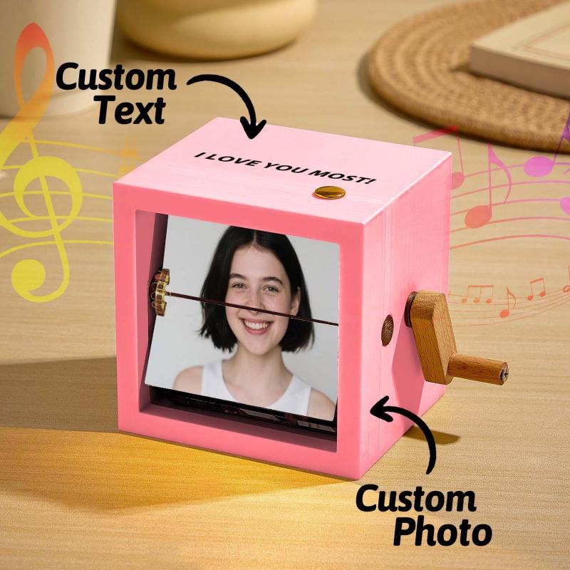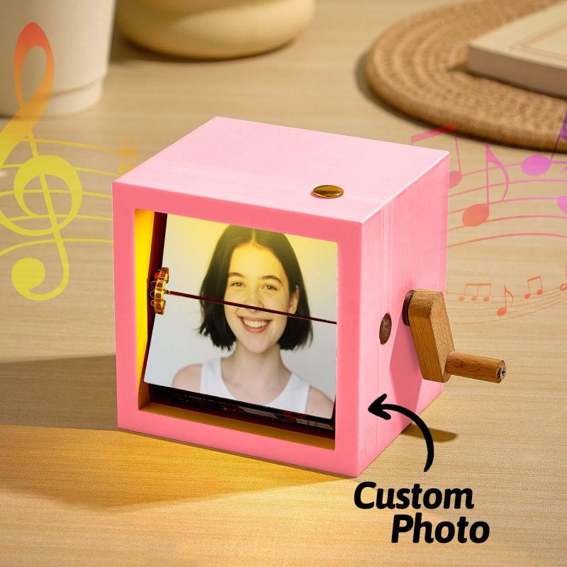 Álbum De Fotos Mecánico Con Manivela, Caja Personalizada Con Marco De Cubo Para Fotos De Bebé En Nogal Claro, Regalo Creativo.