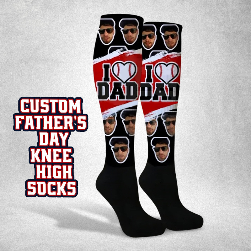 Calcetines Hasta La Rodilla Personalizados Con I Heart Dad, Compresión Personalizada, Torneo Del Día Del Padre, Equipo Deportivo, Béisbol, Softbol, fútbol