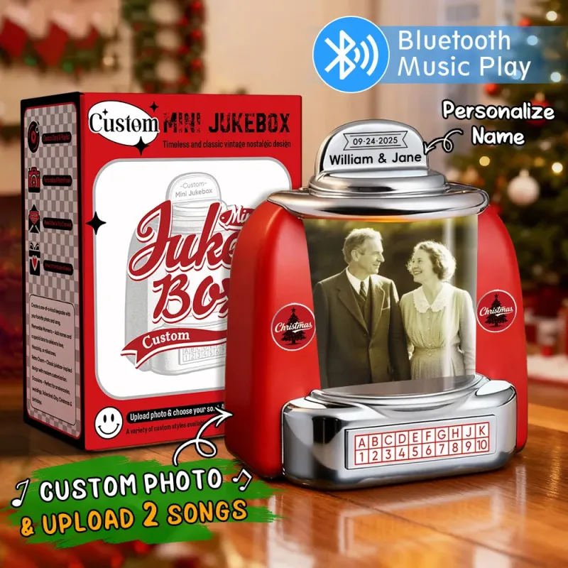 Mini Reproductor De Música Retro Personalizado Con Foto, Nombres Y Fecha, Con Radio Bluetooth | Decoración Vintage Para El Hogar | Regalo Nostálgico