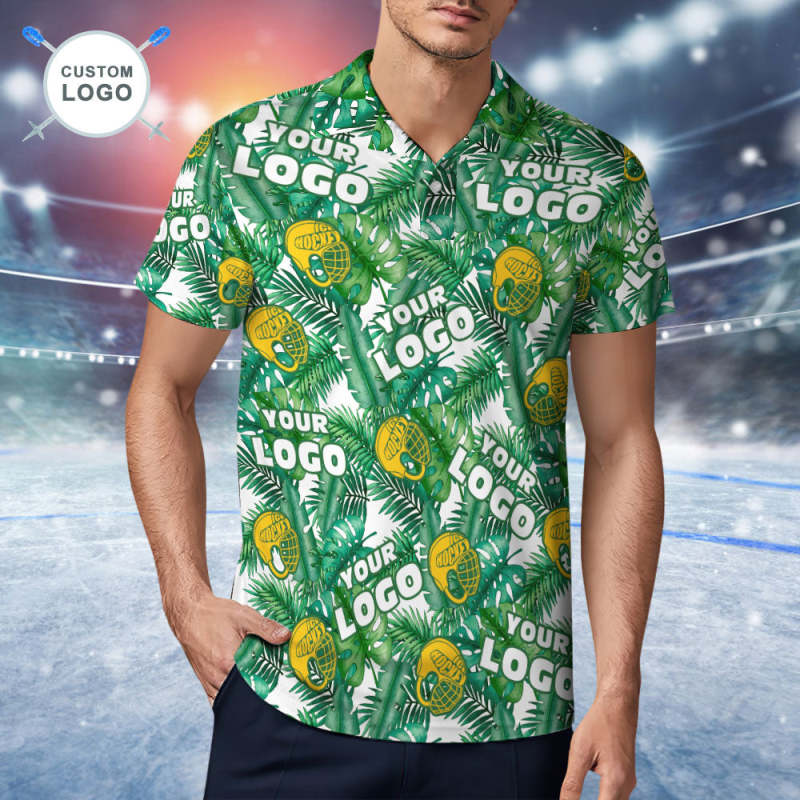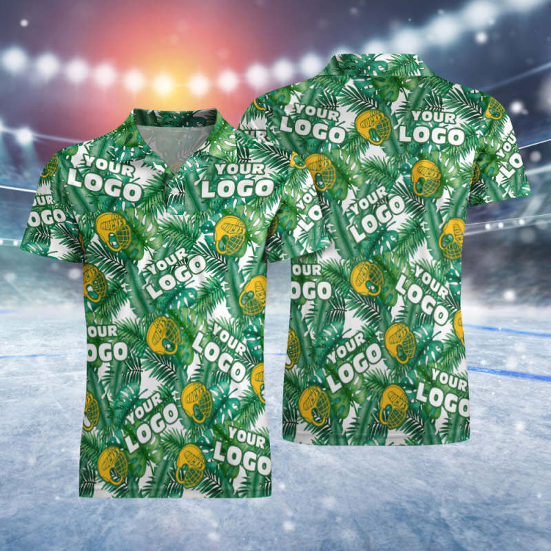 Polo De Manga Corta Con Logotipo Personalizado, Polo Con Casco Amarillo De Hockey Sobre Hielo Tropical Para Él
