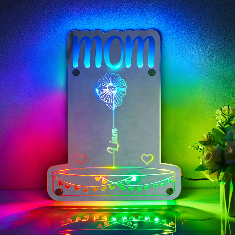 Lámpara De Espejo Led Personalizada Para El Jardín De Mamá Con Flores Y Nombres. Regalos Para El Día De La Madre.