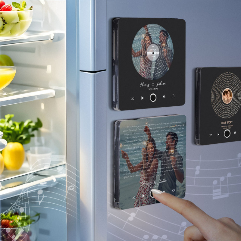 Customized Music: Select romantic love songs or your favorite melodies, DIY customized music module, so that every time the refrigerator door is opened, it will be accompanied by the melody of your love. If you'd like, you can even change the music on the fridge magnet to any song of your choice or a recording of your own voice. For detailed instructions on how to do this, please contact our customer service. We have a dedicated tutorial available for you.