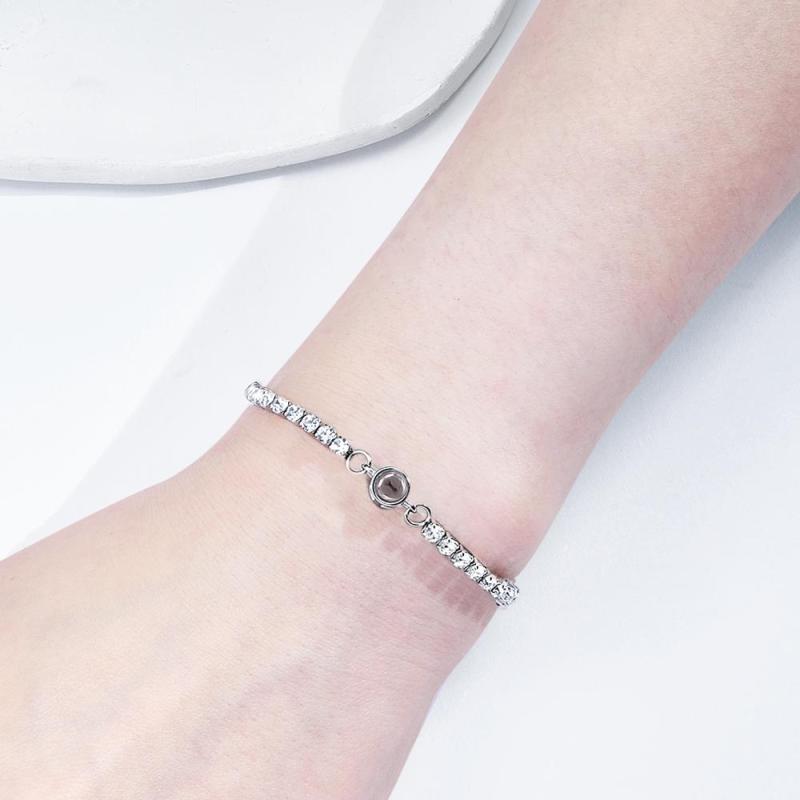 Dile a alguien especial cuánto lo amas con esta elegante pulsera con proyección de fotografías. Simplemente sostenga el colgante frente a una fuente de luz y proyectará la foto. Un regalo perfecto para cumpleaños, aniversarios, bodas, Día de la Madre, Día de San Valentín y Navidad. Se recomienda quitarse la pulsera cuando esté cerca del agua o en cualquier circunstancia en la que la pulsera pueda mancharse con agua o aceites corporales.