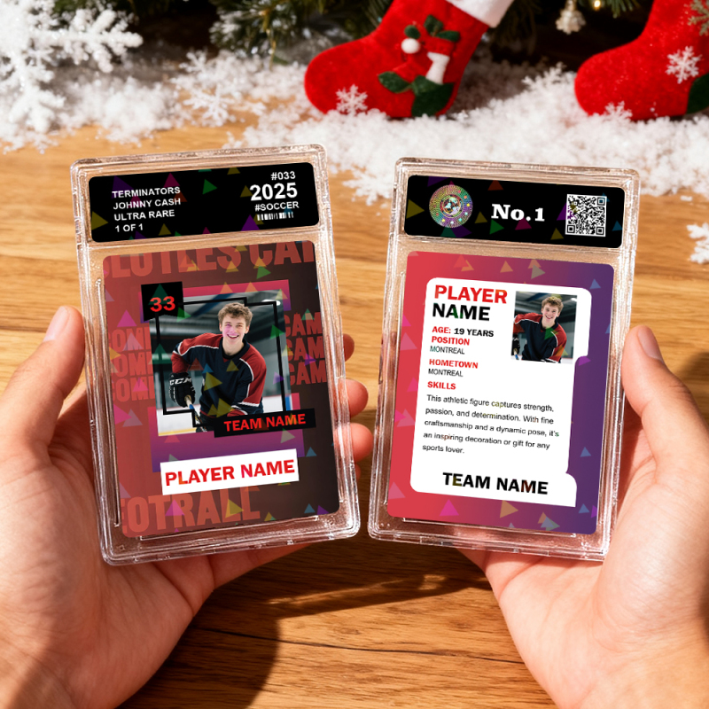 Tarjeta Deportiva Personalizada Para Niños. Tarjeta Con Retrato Personalizado Y Nombre Del Equipo. Excelente Idea De Regalo Para Atletas. Regalo De Navidad.