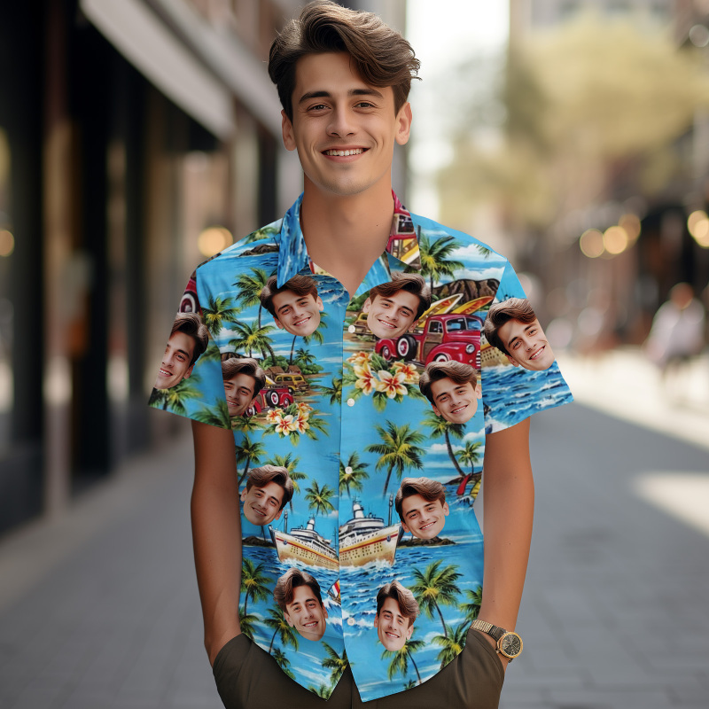Pon tu foto en una camisa hawaiana personalizada.