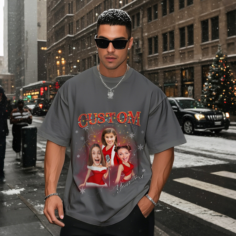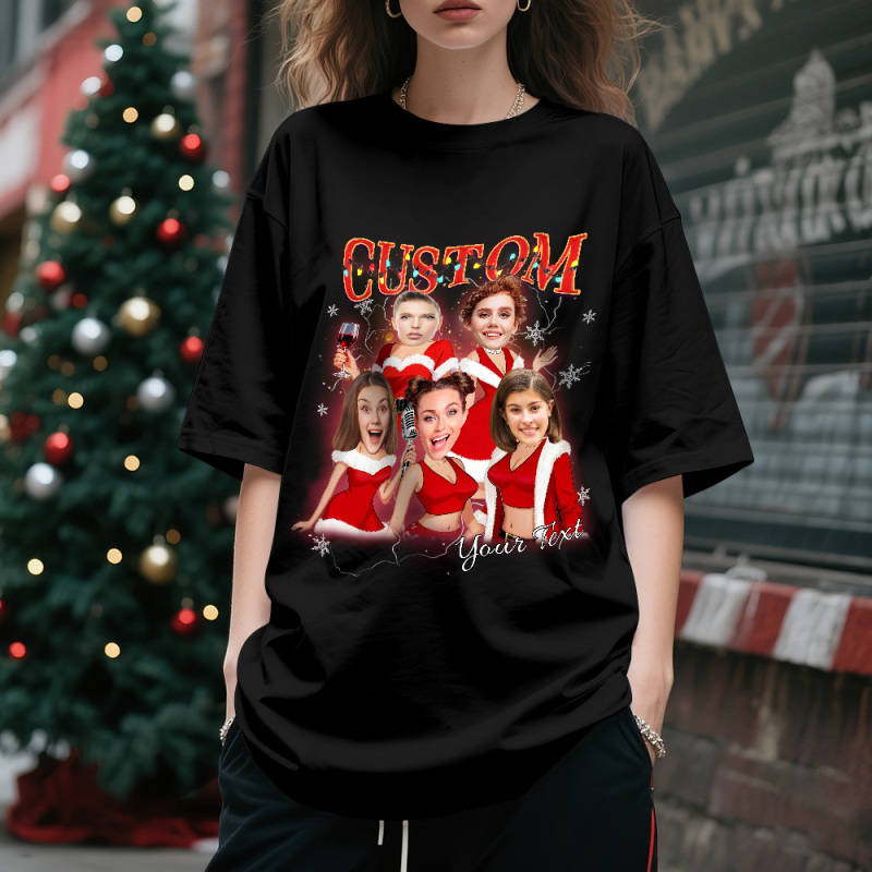 Camiseta Navideña Vintage Personalizada Con Foto, Diseño De Papá Noel Con Luces, Divertida Y Perfecta Como Regalo Para Familiares Y Amigos.