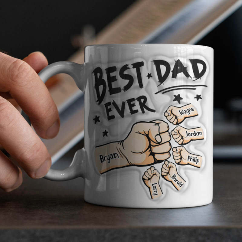 Muestre su amor y aprecio por el padre o el abuelo con un diseño único que calienta tanto las manos como el corazón. Esta taza presenta una conmovedora ilustración de un choque de puños, un tributo sincero al vínculo preciado entre los miembros de la familia.