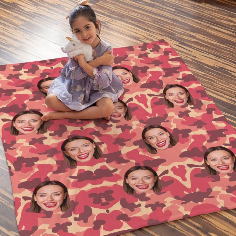 Custom Blanket Personalized Photo Camouflage Blanket For Lover - Misty Rose