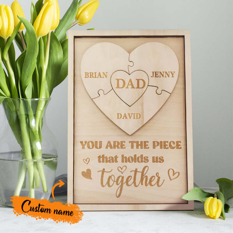 - Con motivo del Día del Padre, envíele a papá una placa con el letrero de rompecabezas con los nombres de los niños. Y proclame con orgullo 'Tú eres la pieza que nos mantiene unidos' a papá. Este regalo conmueve a tu padre o a tu marido más que cualquier promesa y le hará feliz como a un niño.