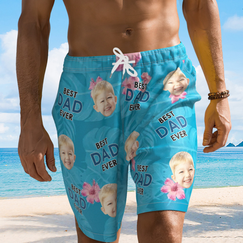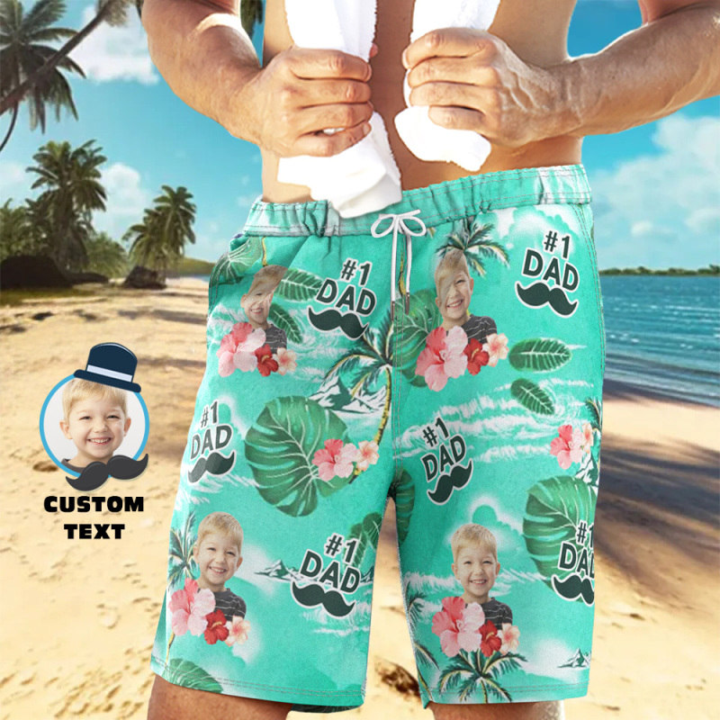 Bañador Personalizado Para Hombre Con Cara Personalizada, Nombre Personalizado, Barba De Papá, Pantalones Cortos De Baño Tropicales, Regalo Para El Día Del Padre