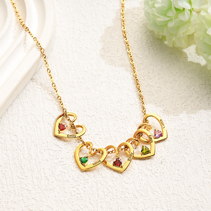 Collar Personalizado Con Nombre Y Piedra De Nacimiento En Forma De Corazón Para Mamá Y Abuela