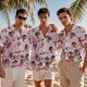 Personalizado Azul Claro Playa Hojas Cara Camisa Hawaiana Cara Pareja Camisa Regalo De Verano Para Pareja
