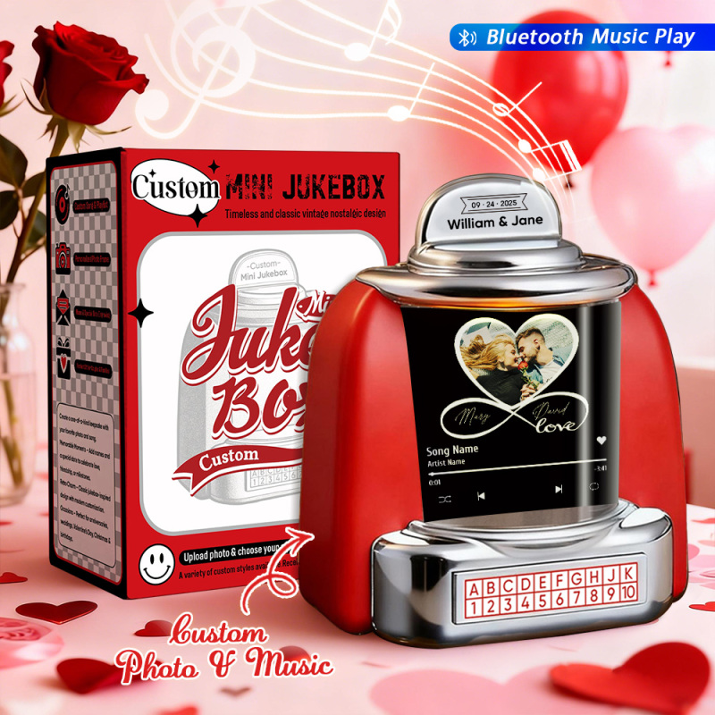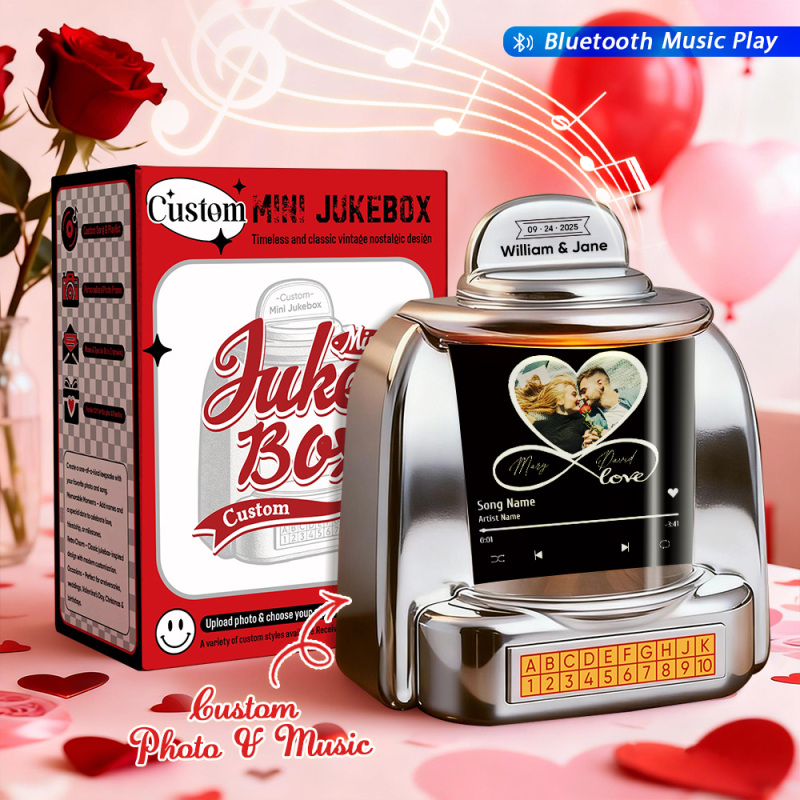 Mini Jukebox Personalizada Con Foto Infinita Y Reproductor De Música Bluetooth: Regalo De Jukebox Personalizado Para Parejas, Momentos Románticos, Aniversarios, San Valentín Y Decoración Del Hogar.