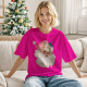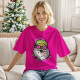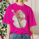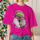 Papá Noel Con Gafas De Sol Camiseta Funky Linda Camisa Navideña Luces Lazo Rosa Coqueta